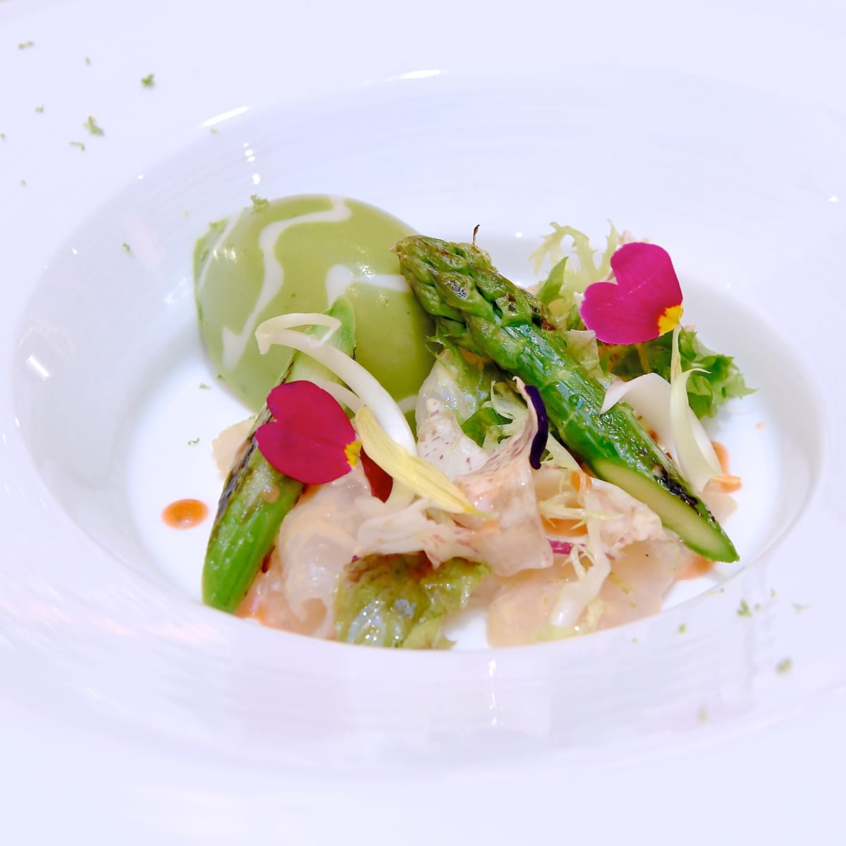 - 真鯛のシトラスマリネ グリーンアスパラガスのババロアとともに