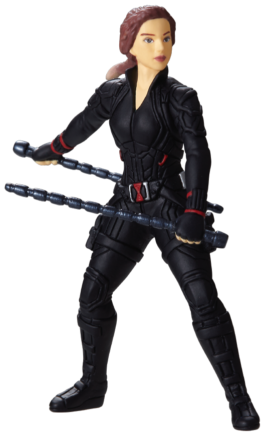 高圧の電流が流れる武器「ウィドウズ スティック」を両手に構える「ブラック・ウィドウ」