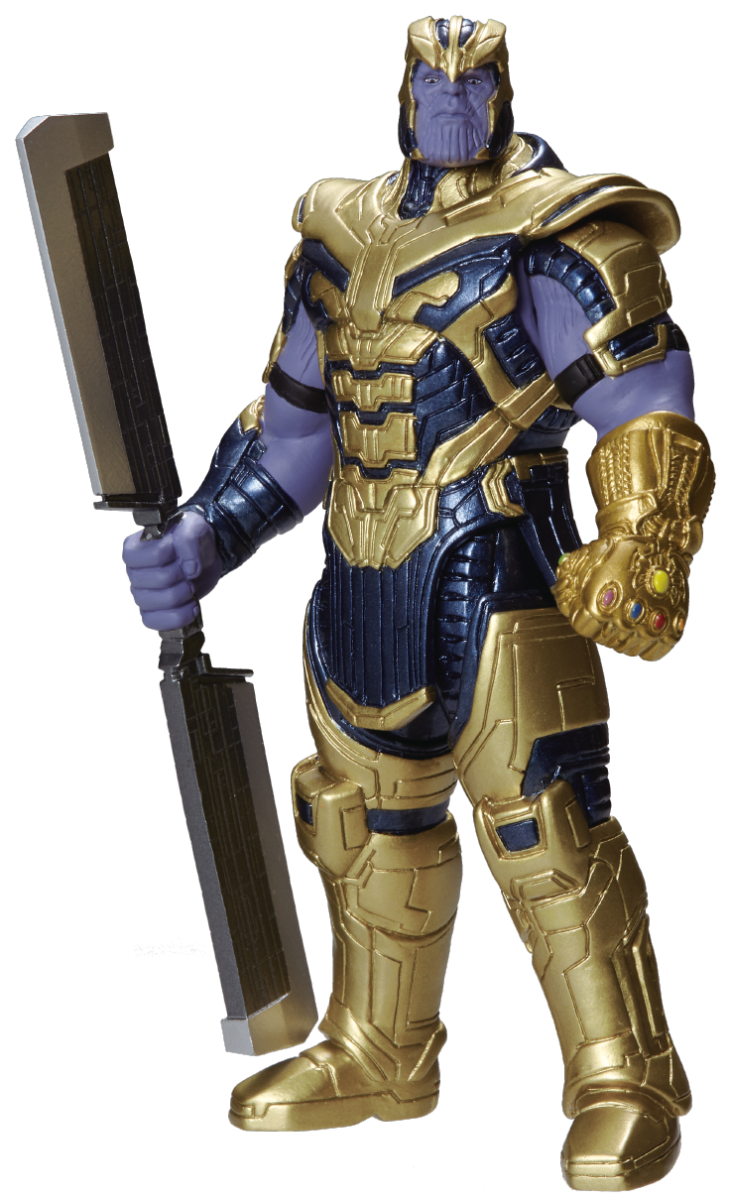 エレガントなゴールドのボディにインフィニティ・ストーンがプリントされた「サノス」
