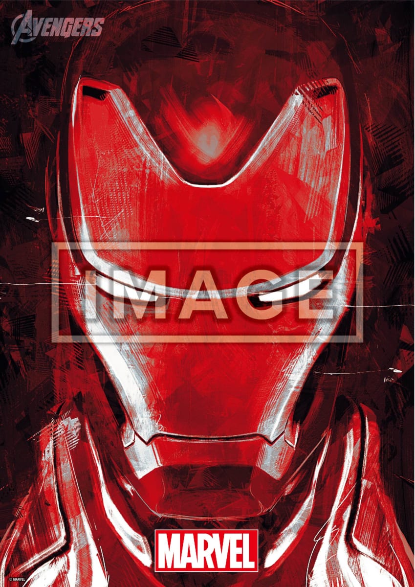 活力みなぎるタッチで「アイアンマン」の顔をアップで落とし込んだポスター