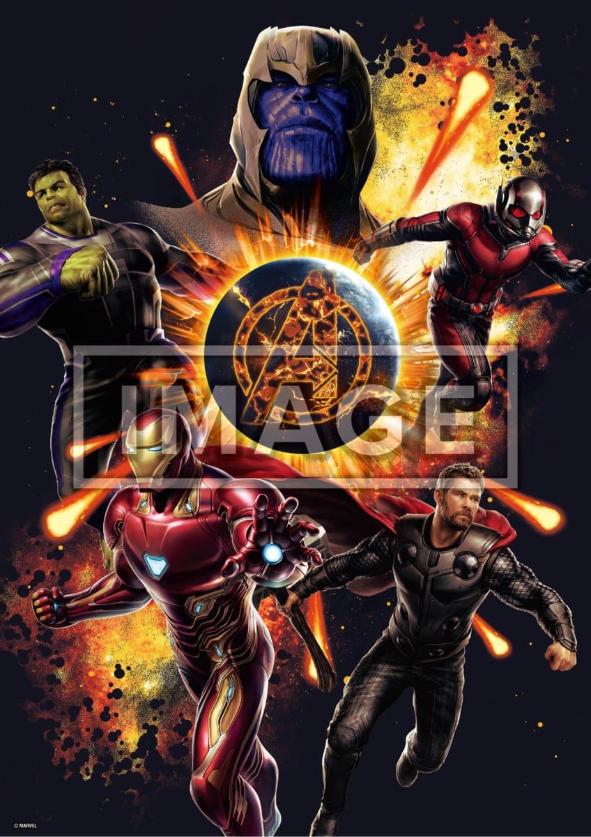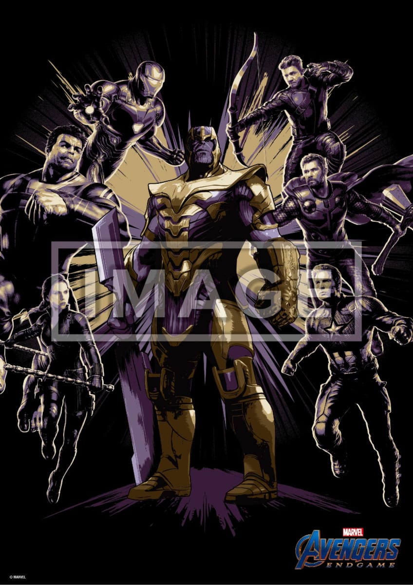 シックなカラーリングで「サノス」や「アベンジャーズ」メンバーたちが躍動感たっぷりにデザインされたもの