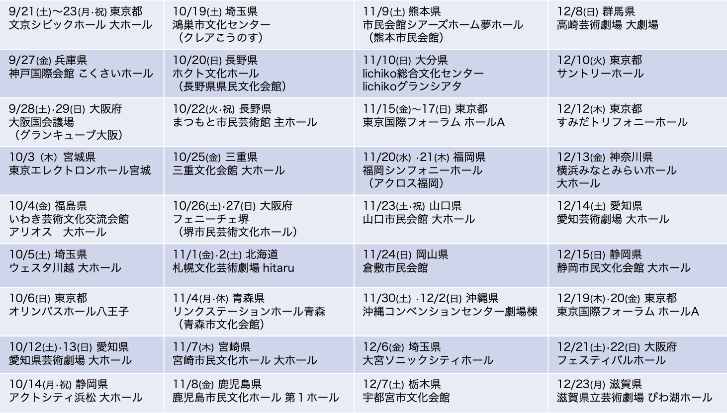 2019年9月21日より、東京都・文京シビックホールを皮切りに、全国24都市49公演で開催。