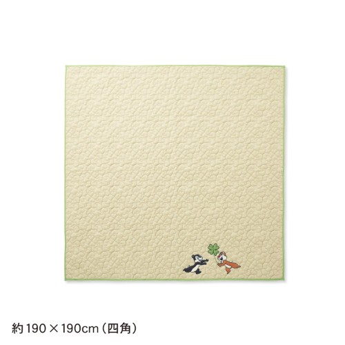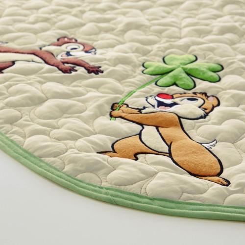 「チップ&デール」のアップリケ刺繍が可愛いアクセントになっている綿100%のキルトラグ。