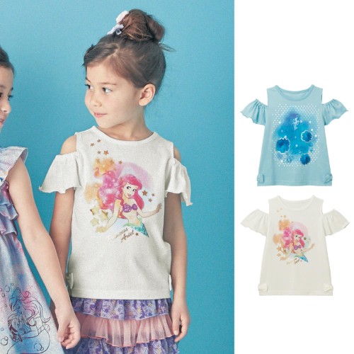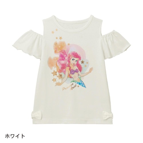 水彩画タッチのアリエル!ベルメゾン ディズニー「フリル袖裾リボン半袖プルオーバー」