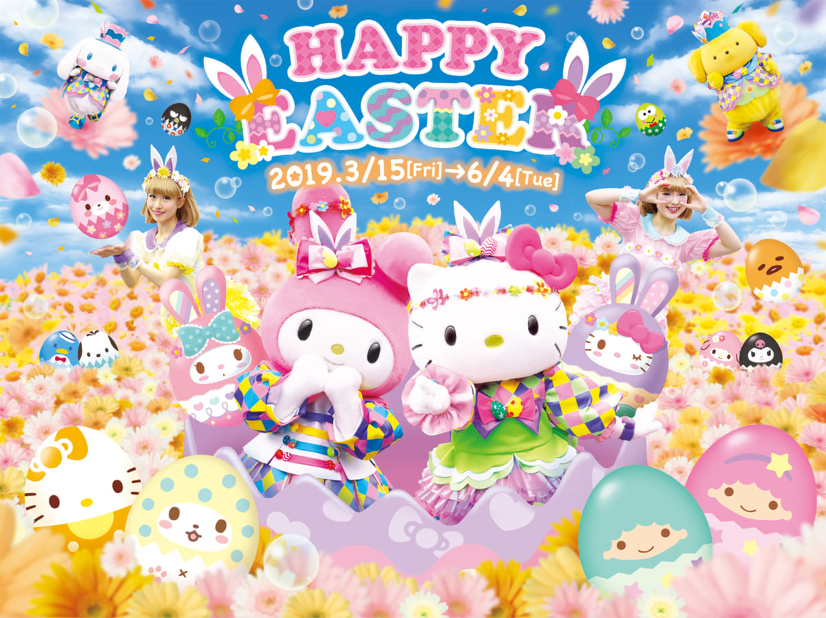イースター衣装を身に着けたサンリオの人気キャラクターのショーや、ハローキティ45周年イベントなどバラエティに富んだ内容となっています。