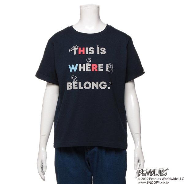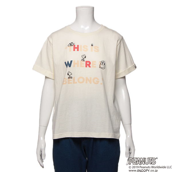 PEANUTSコラボスヌーピーロゴプリントTシャツ