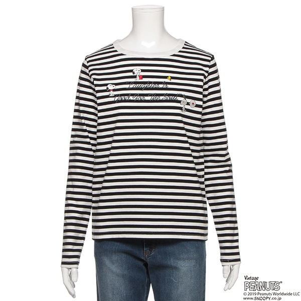 PEANUTSコラボ スヌーピーボーダーTシャツ
