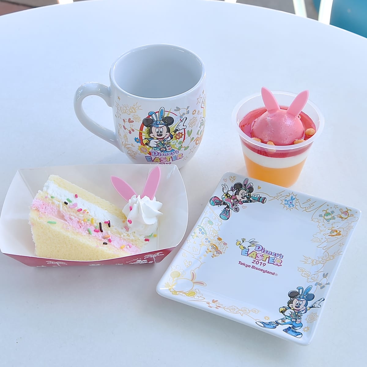 東京ディズニーランド“ディズニー・イースター2019”のデザイン入りカップがついたスイーツ。