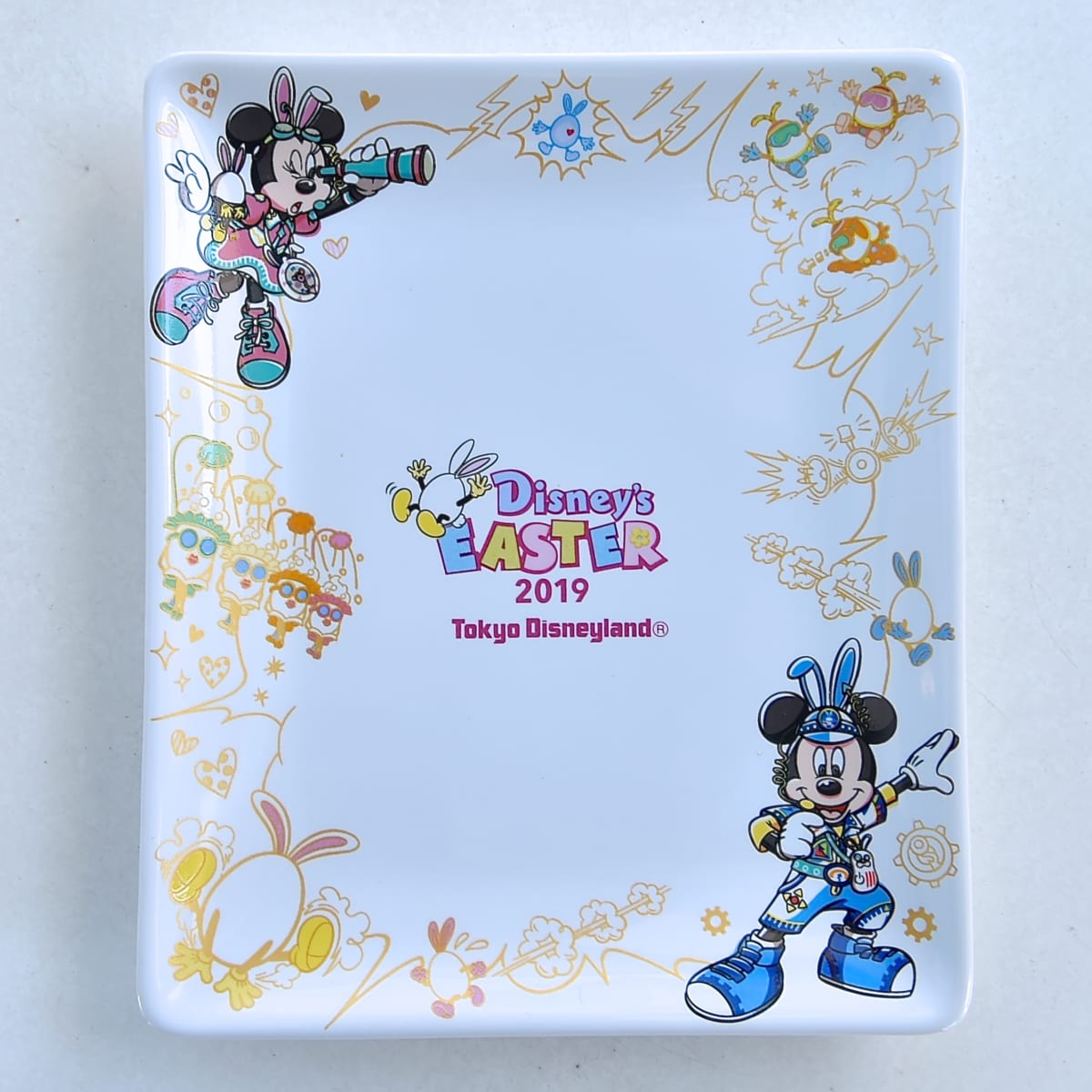 東京ディズニーランド“ディズニー・イースター2019”の「ミッキーマウス」と「ミニーマウス」がコーナーにデザインされたプレート付きのスイーツ。