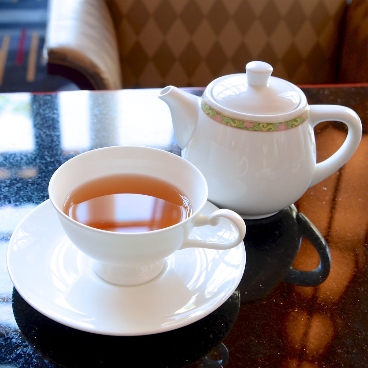 ディズニーアンバサダーホテルのロビーに隣接する開放的なラウンジ、「ハイピリオン・ラウンジ」
