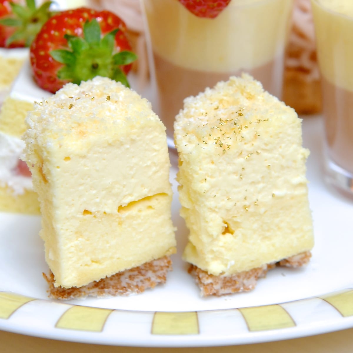 上はさっぱりとしたチーズムースで、下はしっとりとしたニューヨークチーズケーキです。