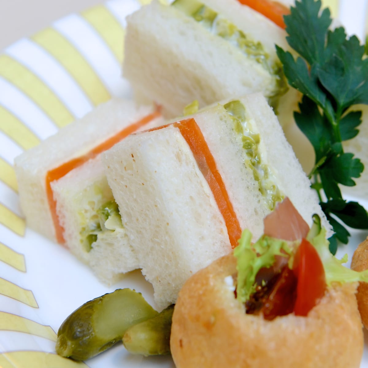細かく刻んだアスパラガスとサーモンのサンドウィッチ。