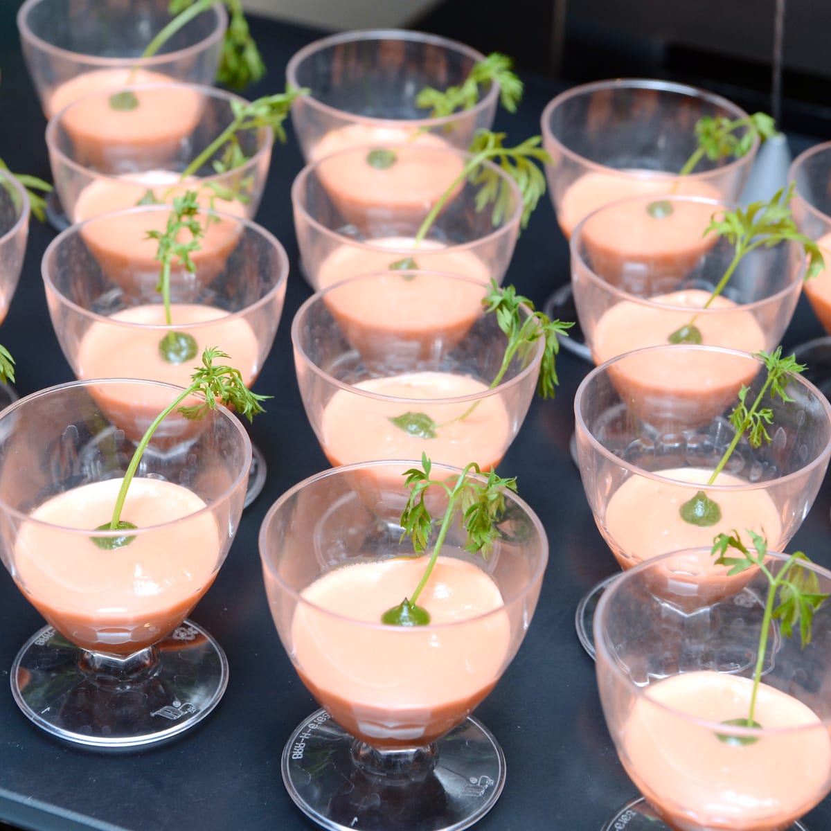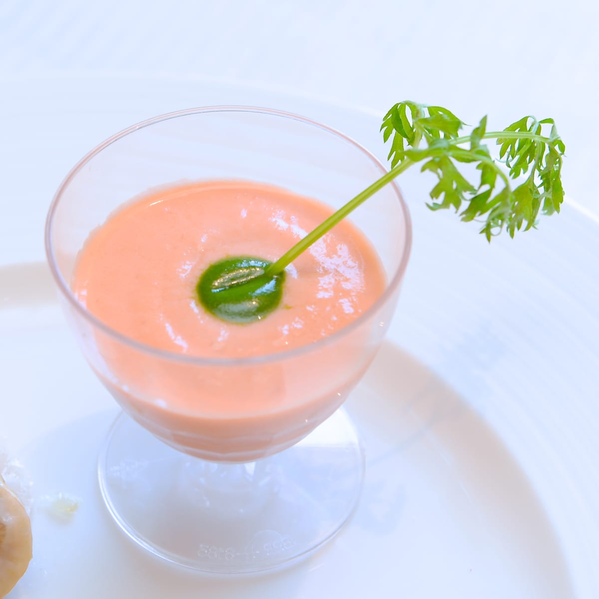 かわいいカップに注がれたキャロットスープ。