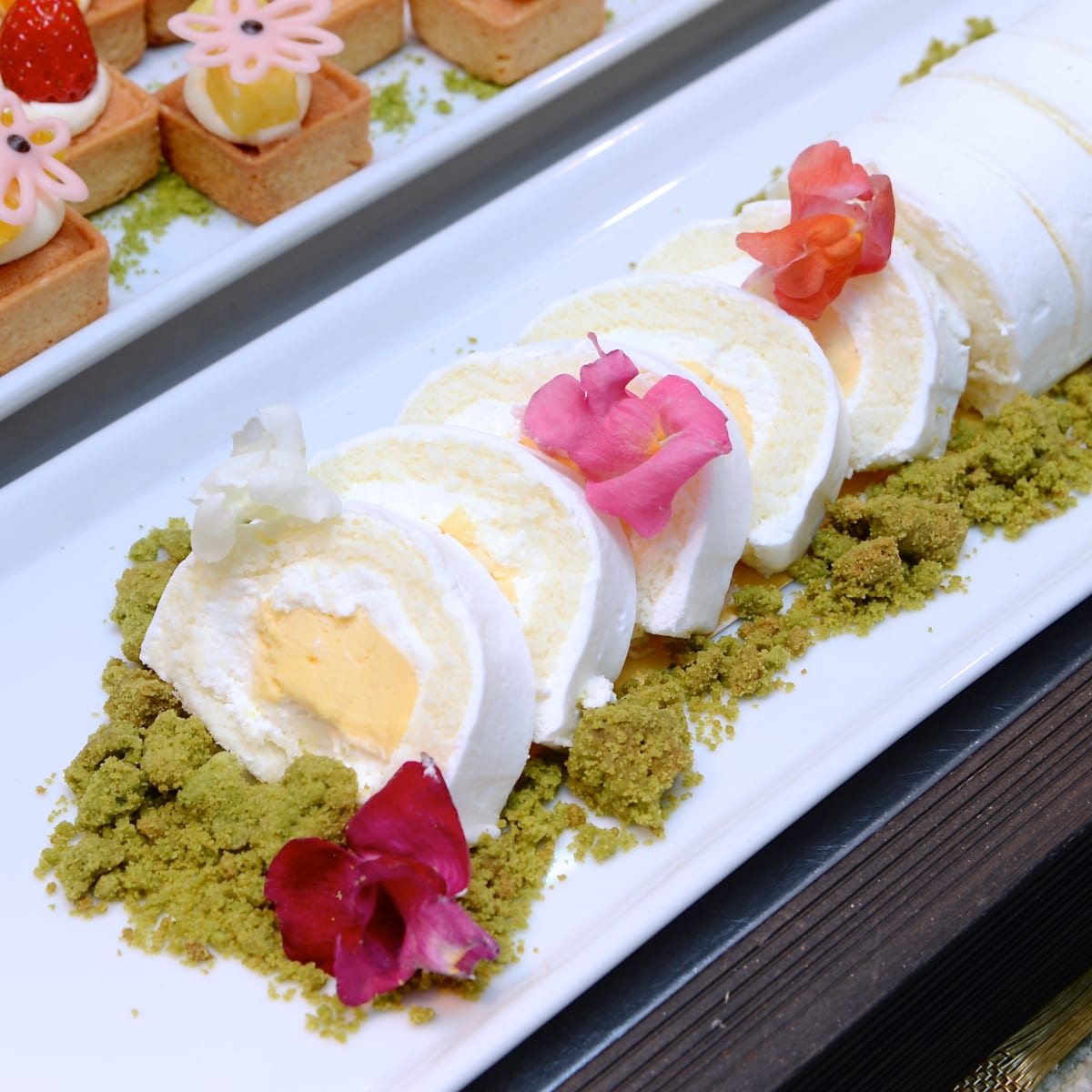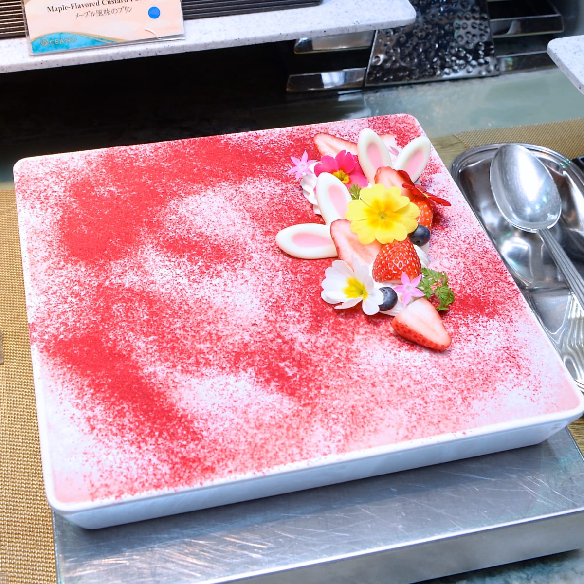 うさみみのチョコレートやエディブルフラワー(食用花)がきれいなベリーティラミスや、