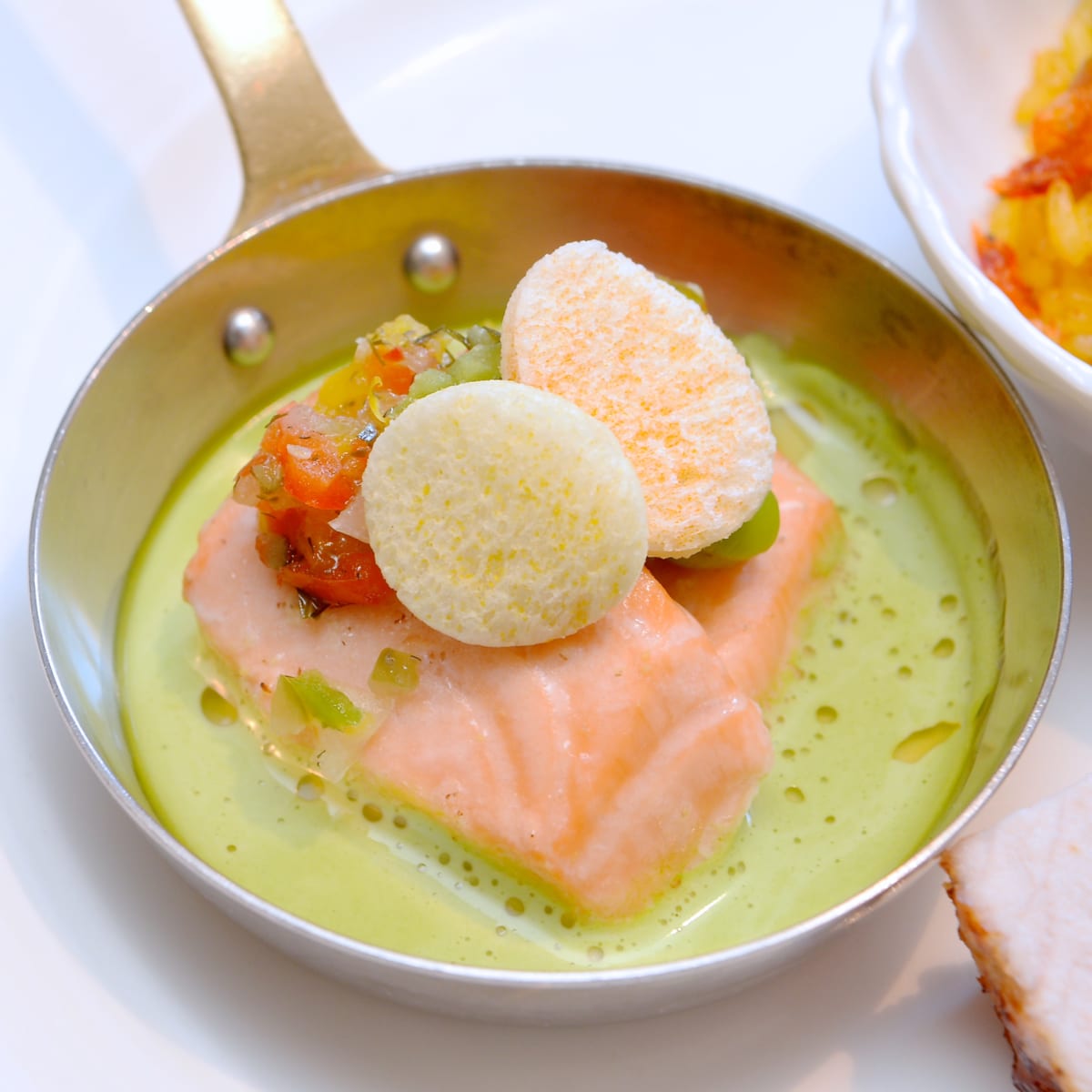 ほのかに酸味を感じるラヴィゴットソースと、サーモンの相性は抜群です。