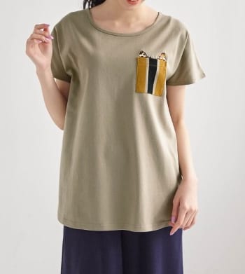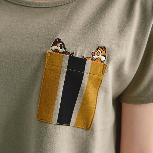 胸元のポケットがアクセントになっている「チップ&デール」のチュニックTシャツ。