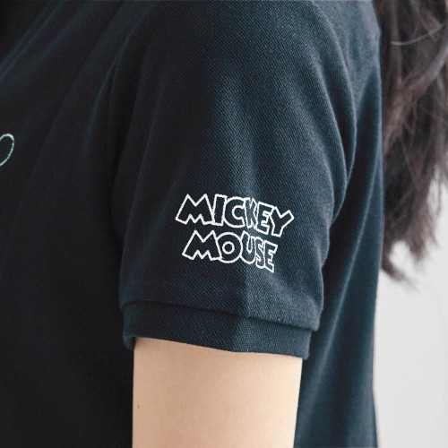 コーディネートしやすいブラックを基調とした「ミッキーマウス」デザインのポロワンピース。