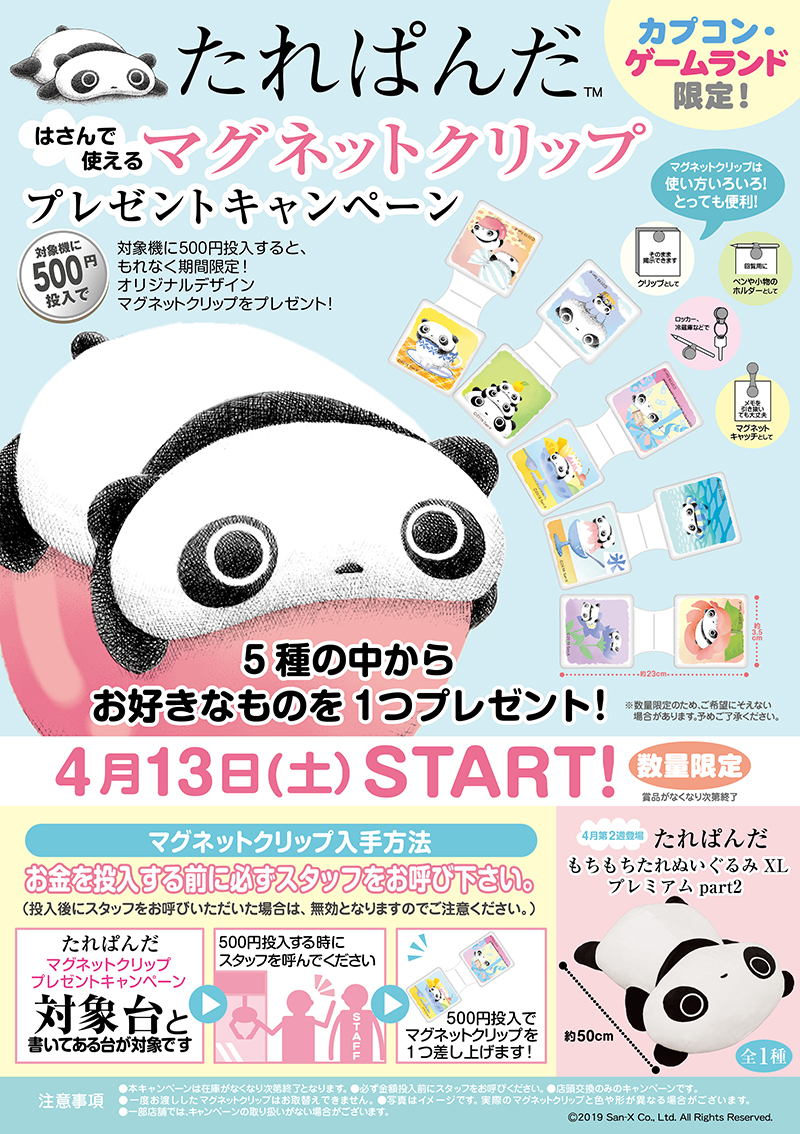 カプコン・ゲームランド限定「たれぱんだ マグネットクリップ プレゼントキャンペーン」