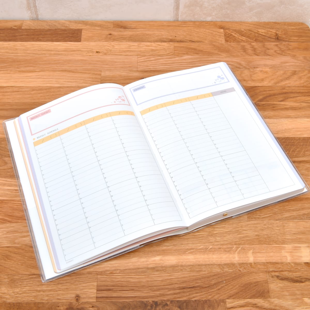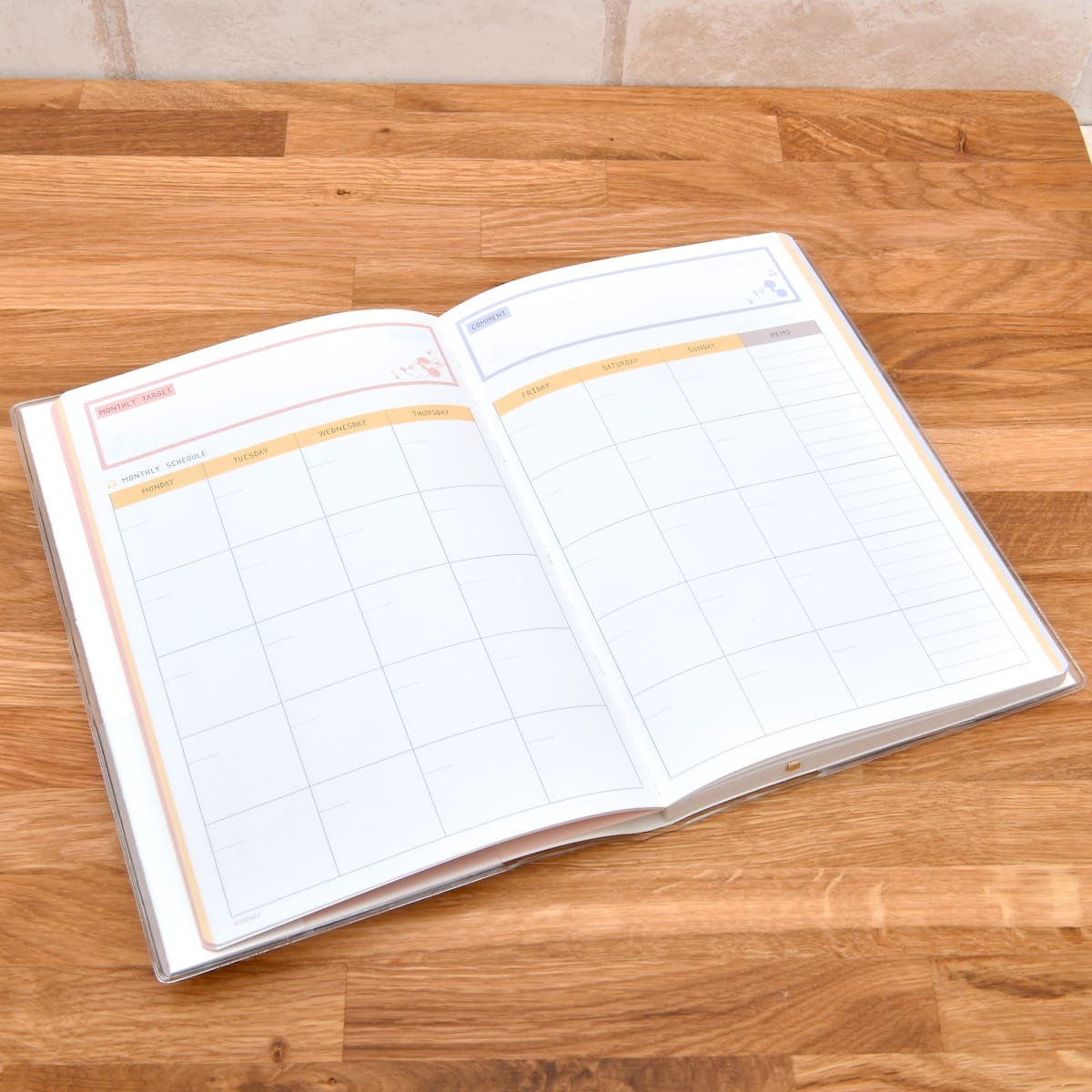 ガーリーなピンクを基調とした「ミニーマウス」デザインの手帳。