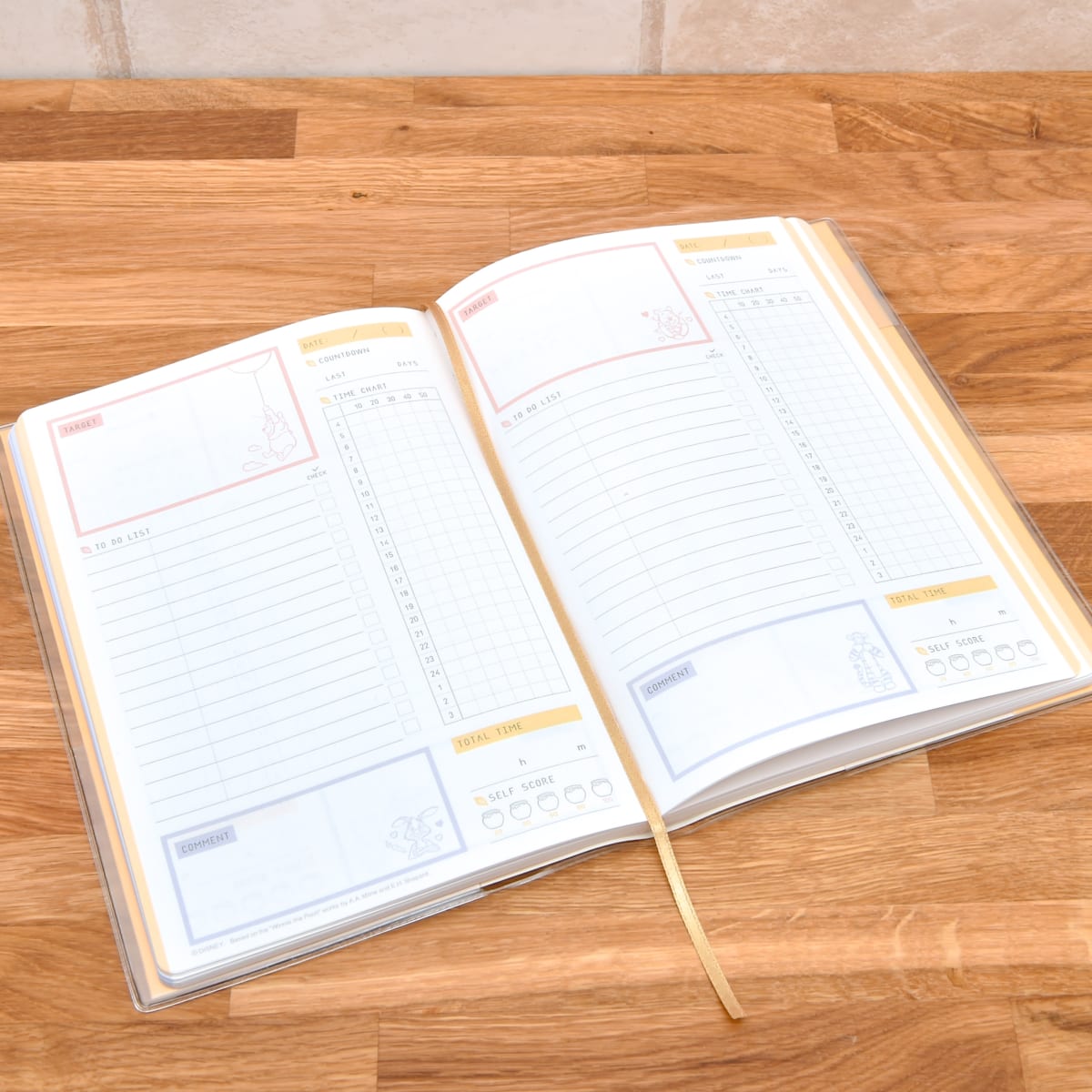 イメージカラーのイエローを基調とした「くまのプーさん」デザインの手帳。
