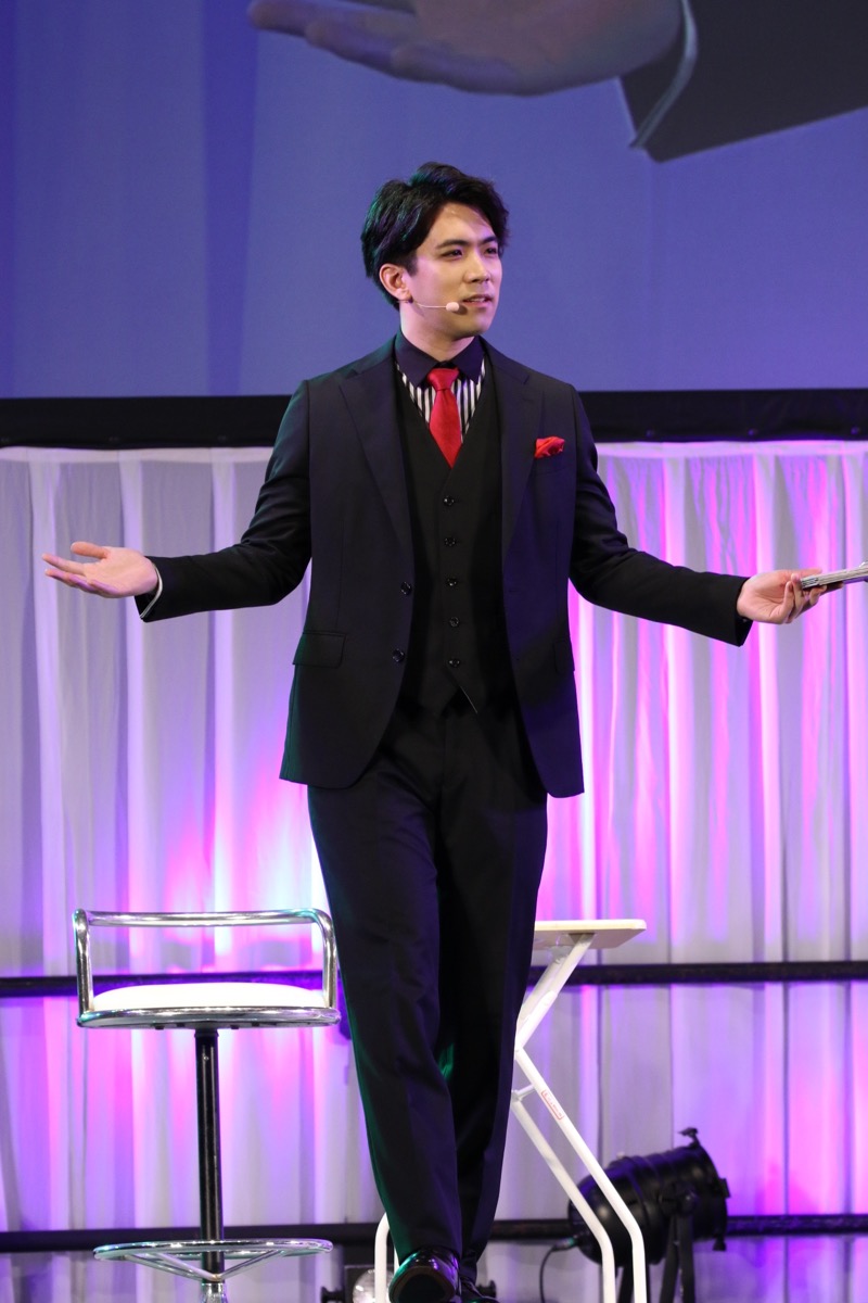 本作のティザーサイトに描かれているキャラクター、「マレウス・ドラコニア」のイラストがスクリーンに現れ、スペシャルシークレットゲストとして、マレウス・ドラコニアを演じる加藤和樹さんがサプライズ登壇!