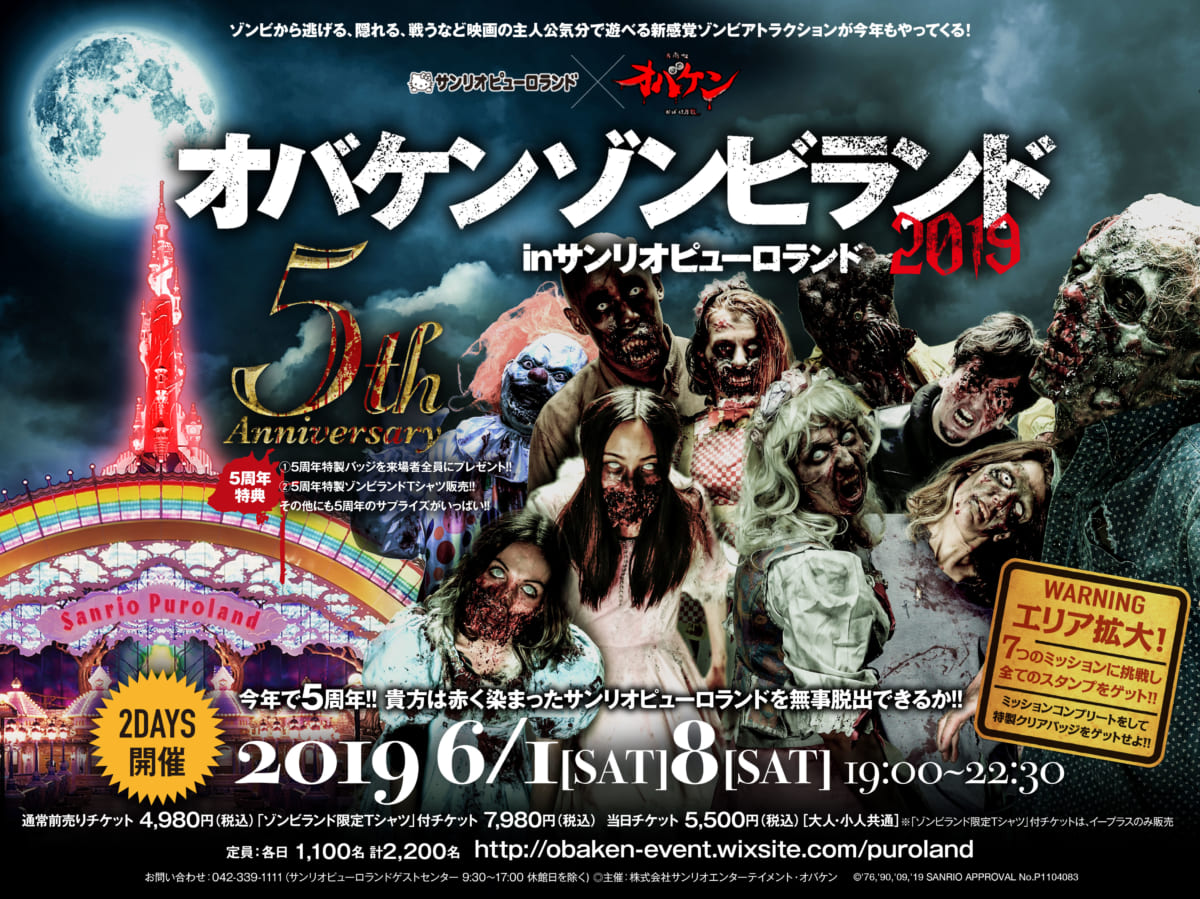サンリオピューロランドと、東京方南町を拠点とする方南町お化け屋敷オバケンが共同で、2019年6月1日(土)、6月8日(土)の2日間、ピューロランドにて一般営業終了後にミッションクリア型のホラーイベント「オバケンゾンビランドinサンリオピューロランド2019」を開催!
