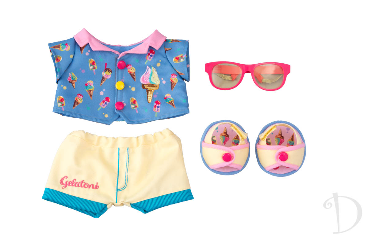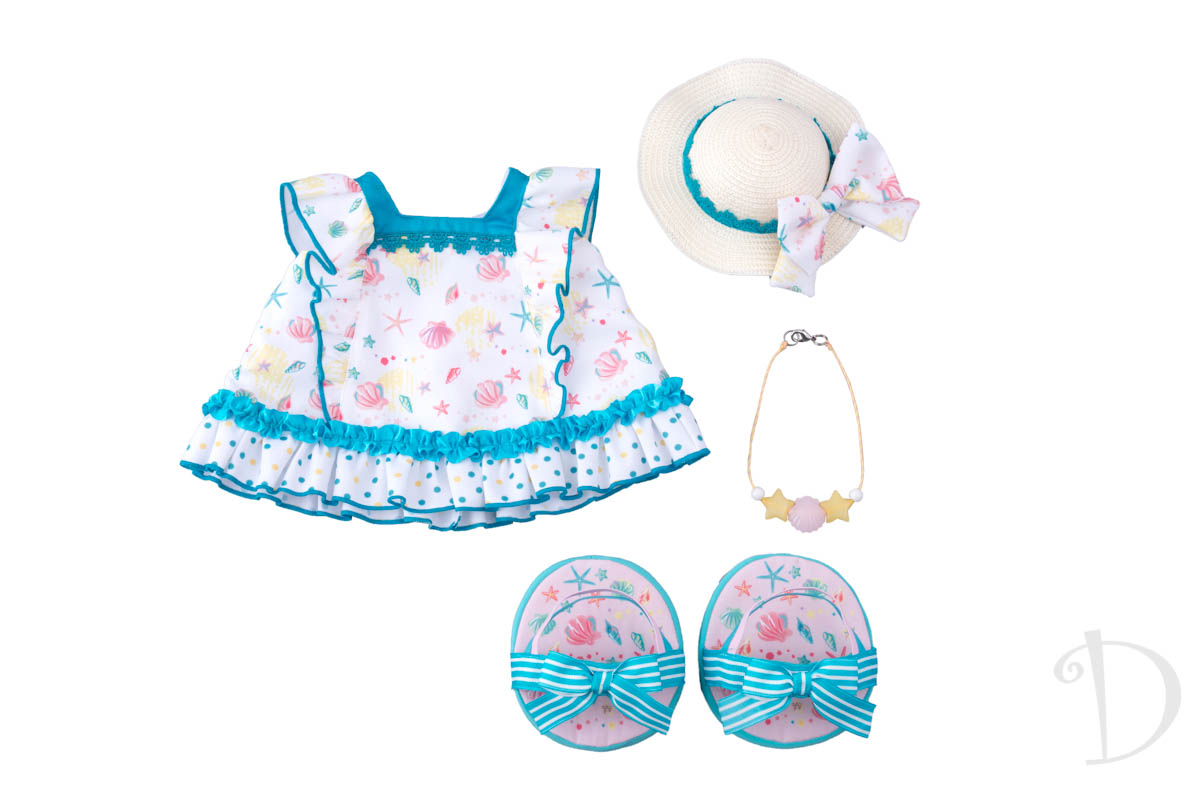ケープコッドの風景や貝殻、ジェラートやアイスクリーム、お花などのモチーフがかわいいコスチュームセット。