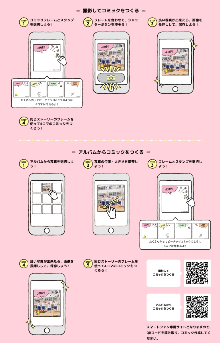 スマートフォンでコミックフレームに合わせて楽しい写真を撮って遊べます☆