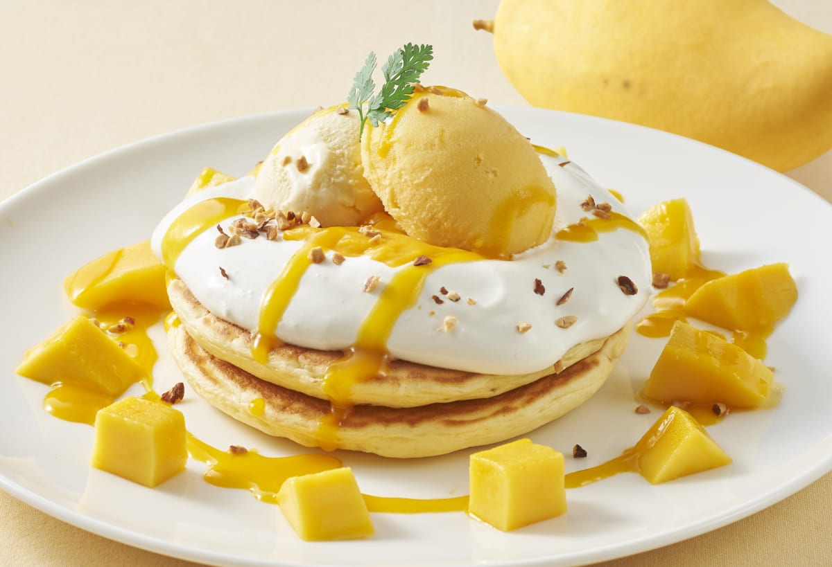 ジョナサン「完熟マンゴーとふわふわマスカルポーネホイップのパンケーキ」