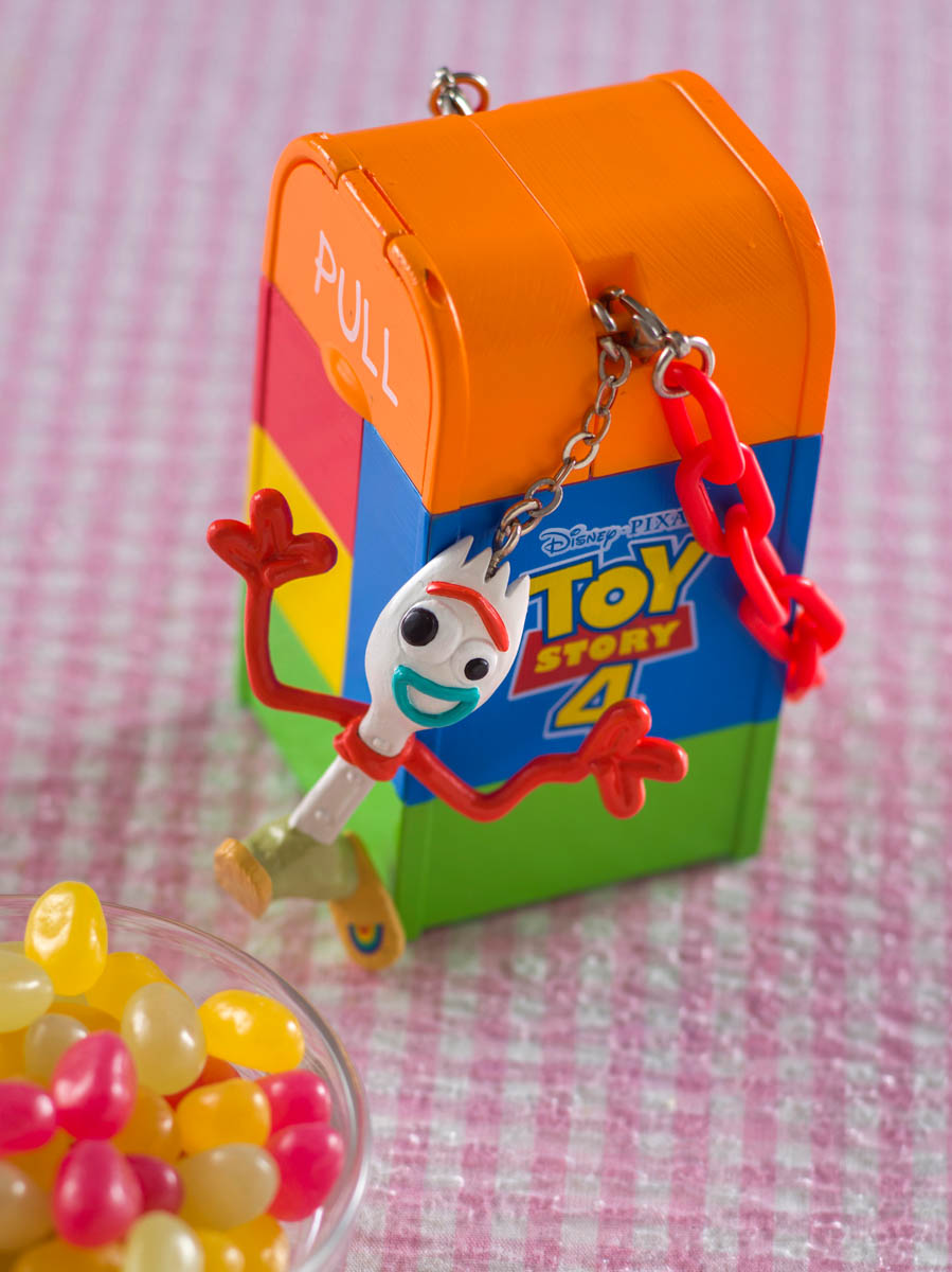 『トイ・ストーリー4』の新キャラクター”フォーキー”のチャームが付いたトラッシュ缶がモチーフのミニスナックケース。