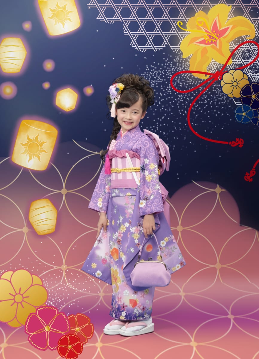 ディズニープリンセス衣装の中で人気の高い「ラプンツェル」の世界観を和装でも楽しめます。