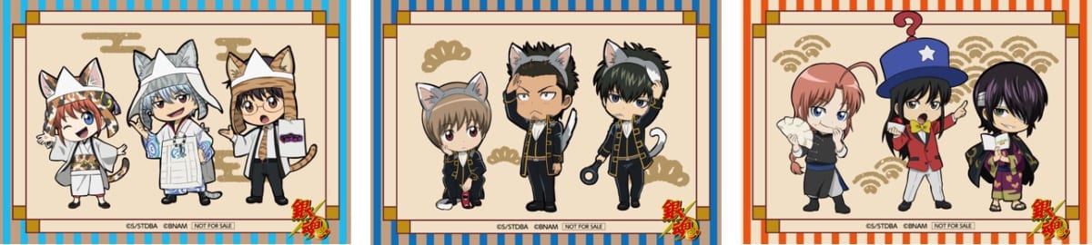 『銀魂』キャラクターたちが猫耳スタイルのデフォルメタッチで描かれた缶バッジやアクリルスタンドなどが販売されます☆
