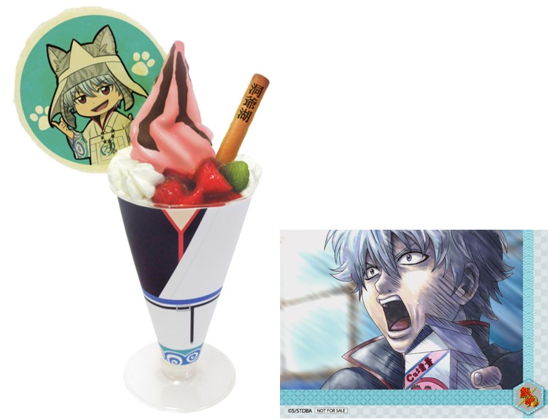 「銀時」の衣装がデザインされたカップに、いちごを使用したアイスやソースがトッピングされています☆