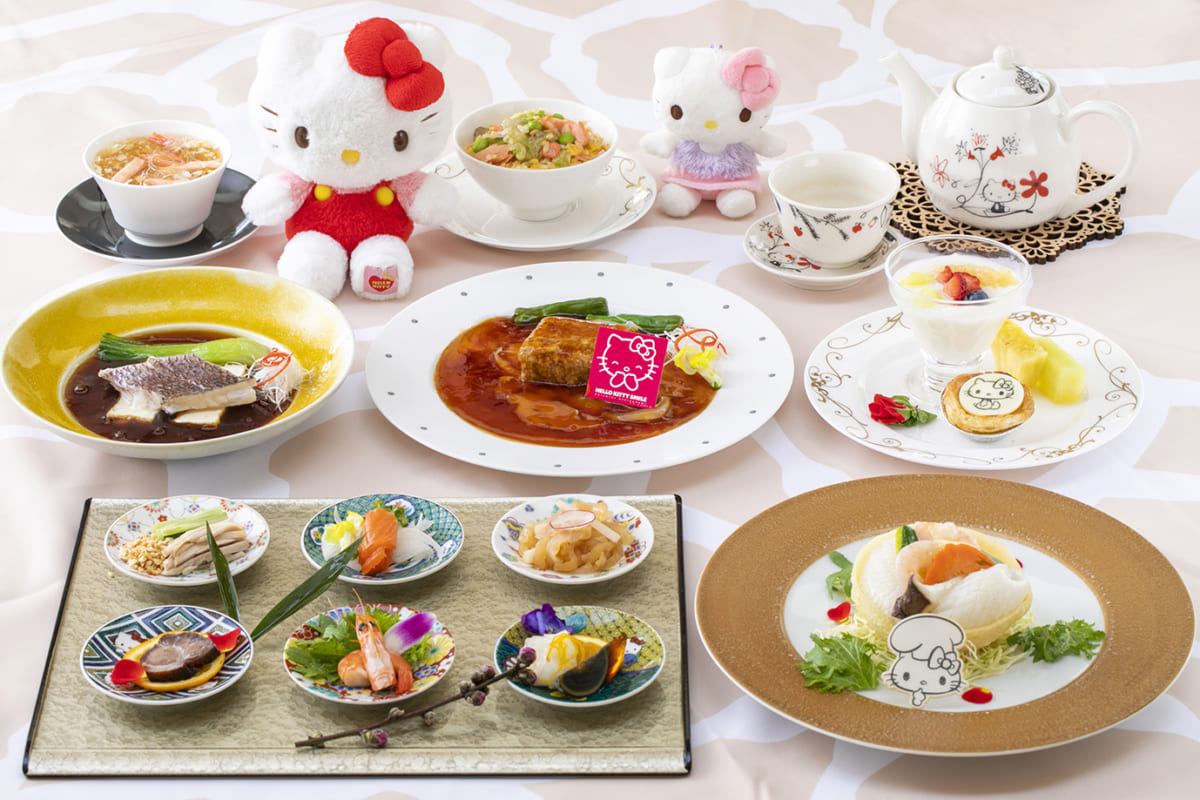 淡路島産の食材を使用した料理をオーダー式ブッフェで提供する「SMILEレストラン」では、サンリオの人気キャラクター「ハローキティ」の装飾を多くあしらったコース料理が提供されます。