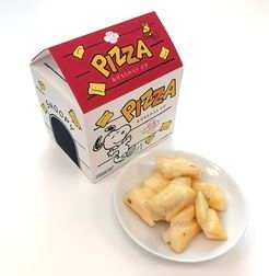 楽しげなスヌーピーのおうちの中には、トマトソースピザをベースとしたサクサクのあげもちからりが詰まっています。