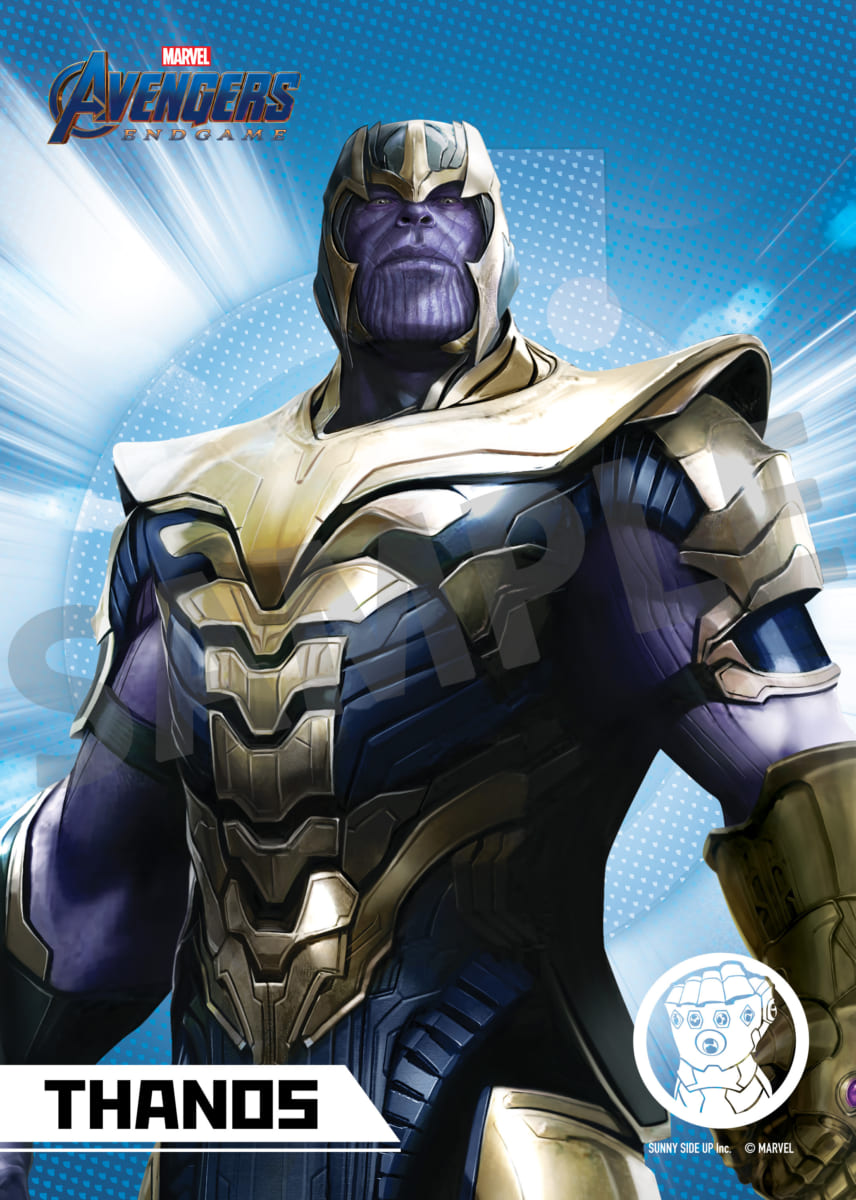 「アベンジャーズ」シリーズ史上最強のヴィラン「サノス」がプリントされたものなど、全15種類がラインナップ。