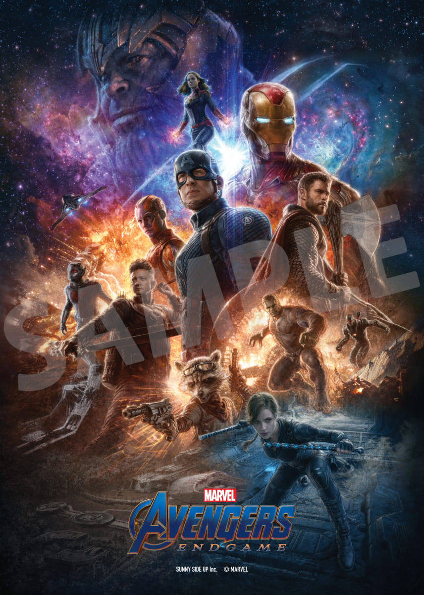 銀河をバックに「サノス」や「アベンジャーズ」メンバーが配されたブロマイドや