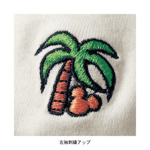それぞれ左袖にはヤシの木とミッキーシェイプの刺繍入り。