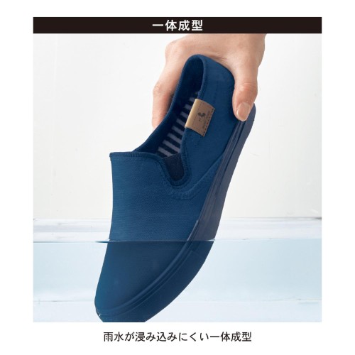 脱ぎ履きしやすいスリッポンタイプの雨靴。