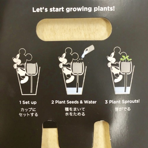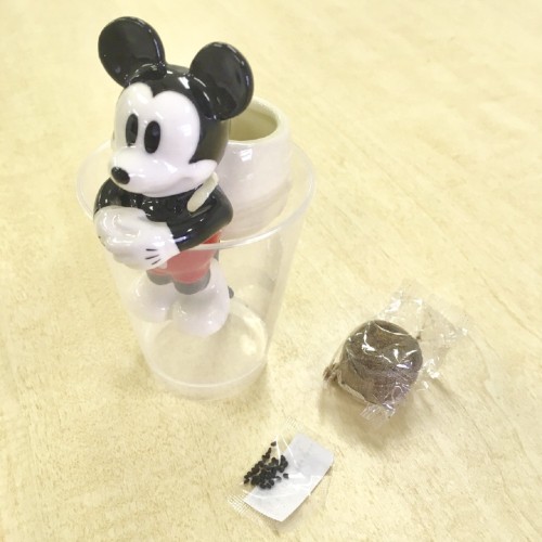カゴを背負っている姿が愛らしい「ミッキーマウス」の栽培キット。