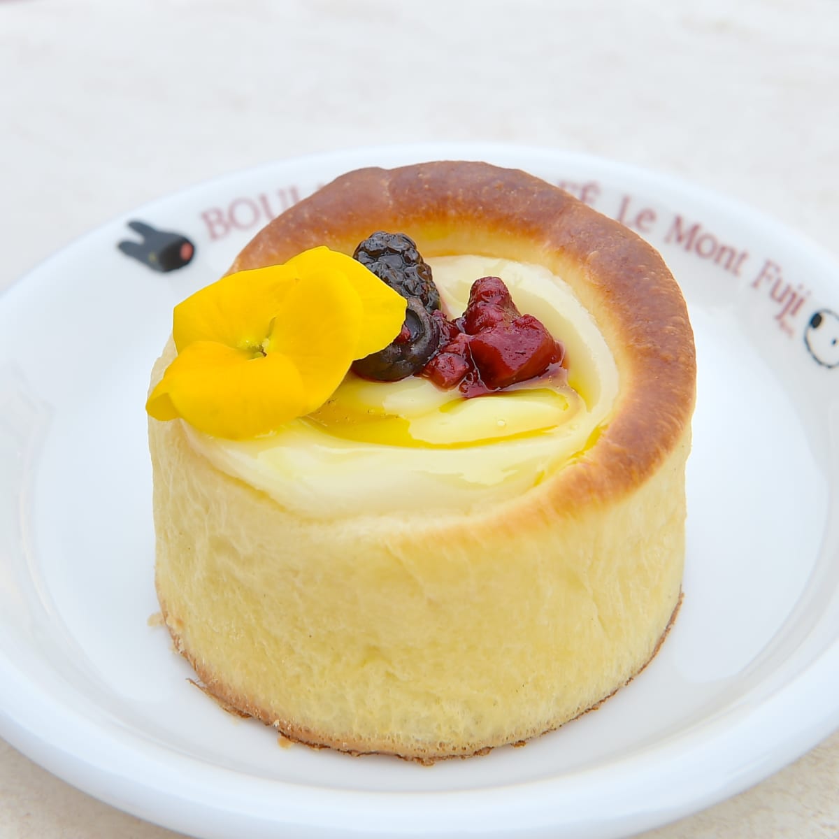 色鮮やかなお花がトッピングされたチーズケーキ風パン。