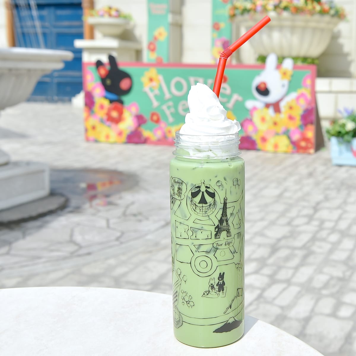 スーベニアドリンクボトル付きの抹茶ミルク。