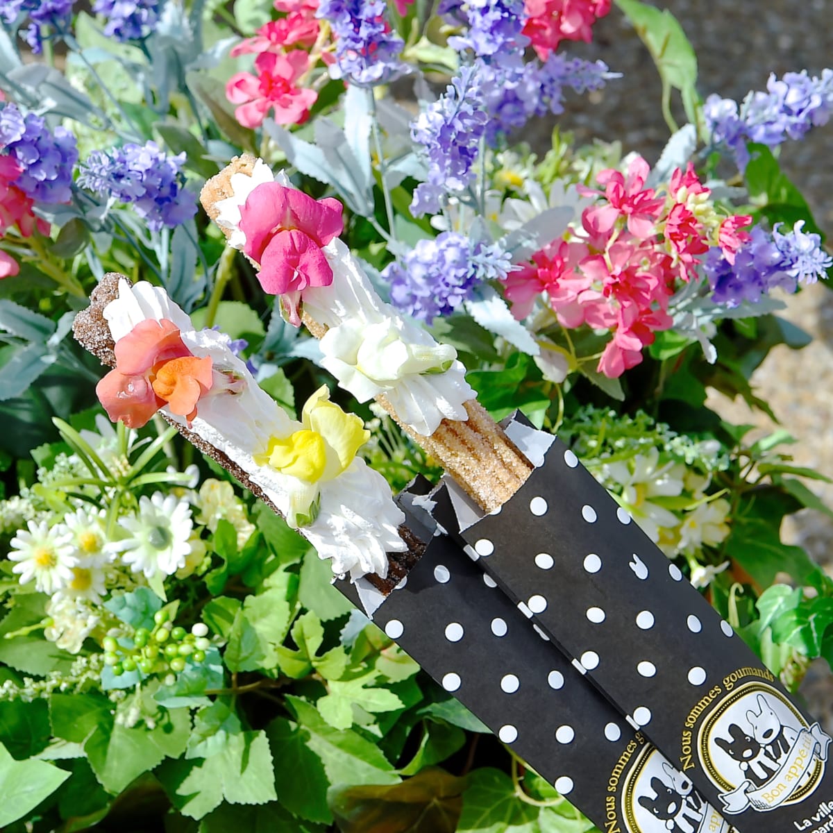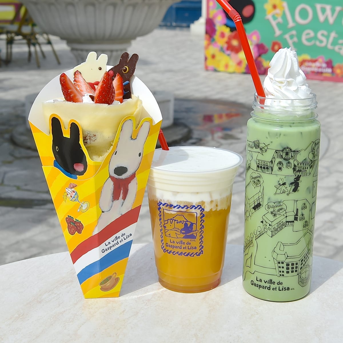 「リサとガスパール タウン」内の各店舗では、花にちなんだ期間限定メニューを提供。