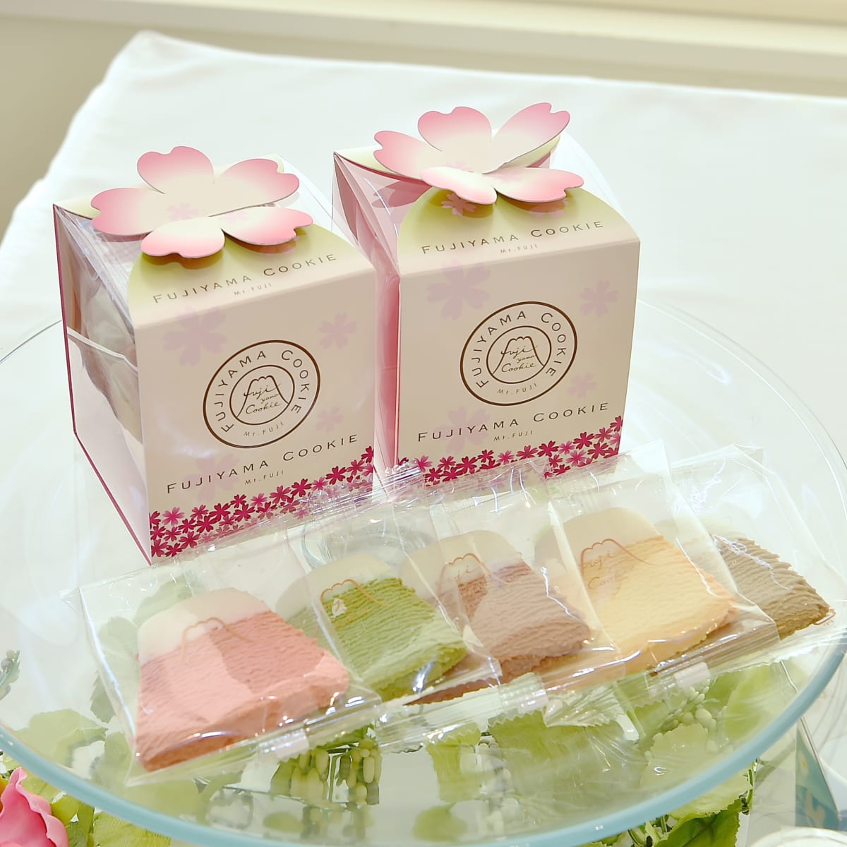 お花柄のパッケージに入ったカラフルな富士山型クッキーが販売されています。