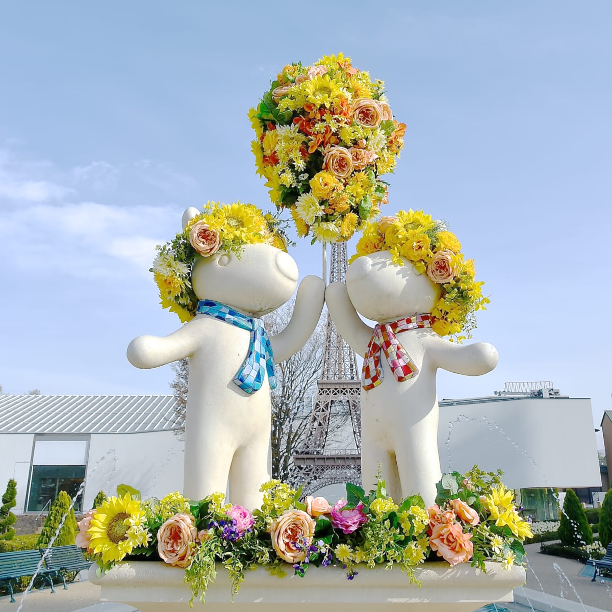 エッフェル塔のあるメイン広場にダッチアイリス、ヒヤシンスなど4品種、約2万株の黄色い花が咲き誇るほか、パリの街並みが色鮮やかな花々で華やかにデコレーションされます☆