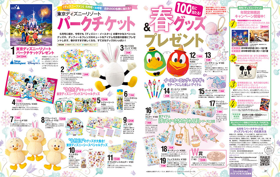 「ディズニーファン」5月号・6月号連続で合計200名様に当たる、東京ディズニーリゾート パークチケット&春グッズプレゼント企画も必見です☆