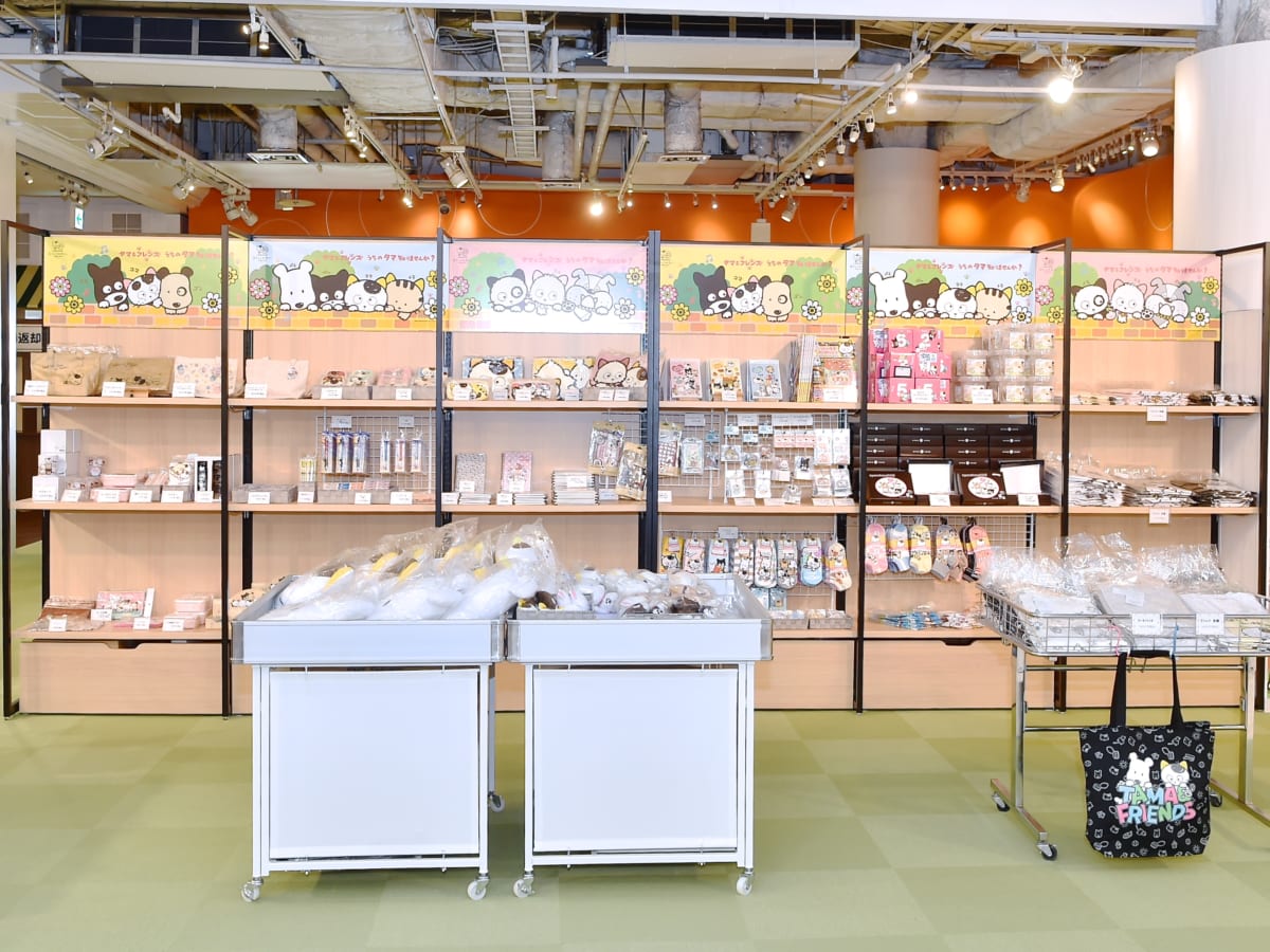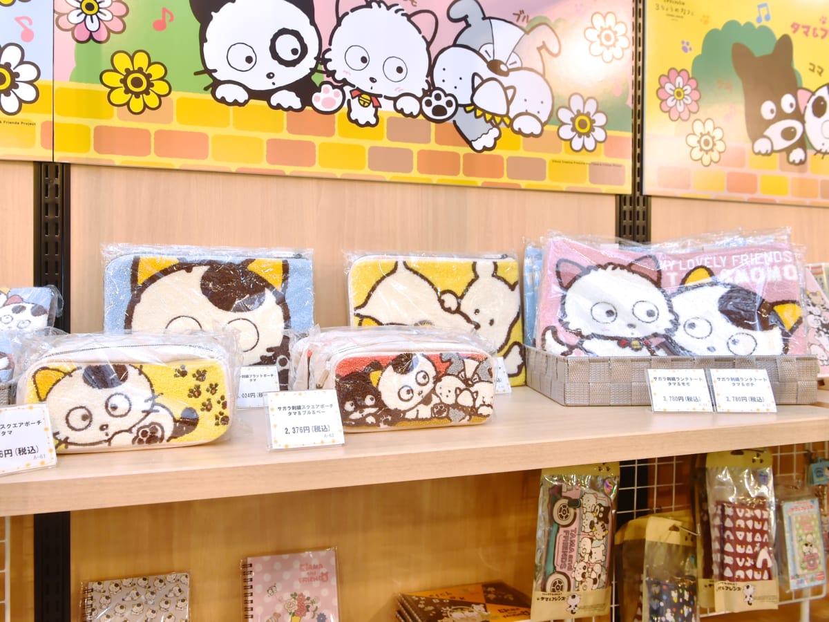 かわいいぬいぐるみはもちろん、ランチトートやポーチなどの雑貨やステーショナリーまで「タマ&フレンズ」のさまざまなグッズが取りそろえられています。
