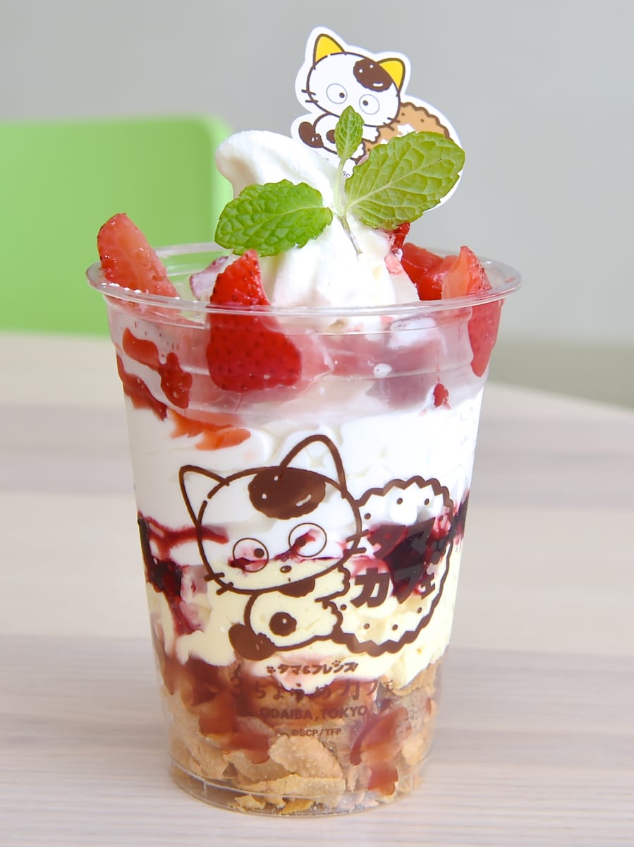 「タマ」をモチーフにしたパフェ。