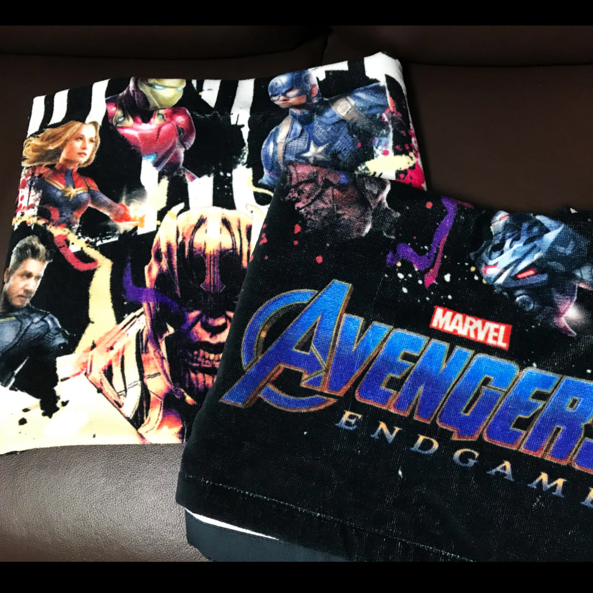 「アベンジャーズ」の勇姿がプリントされたバスタオル。
