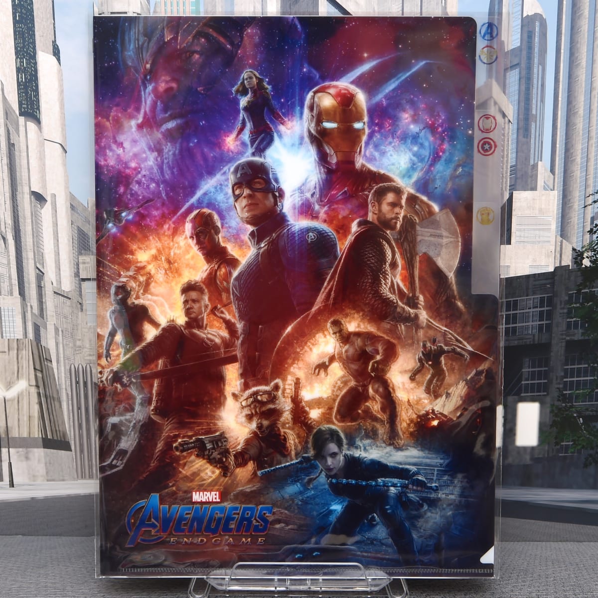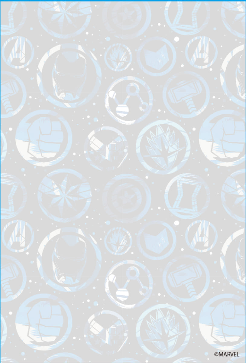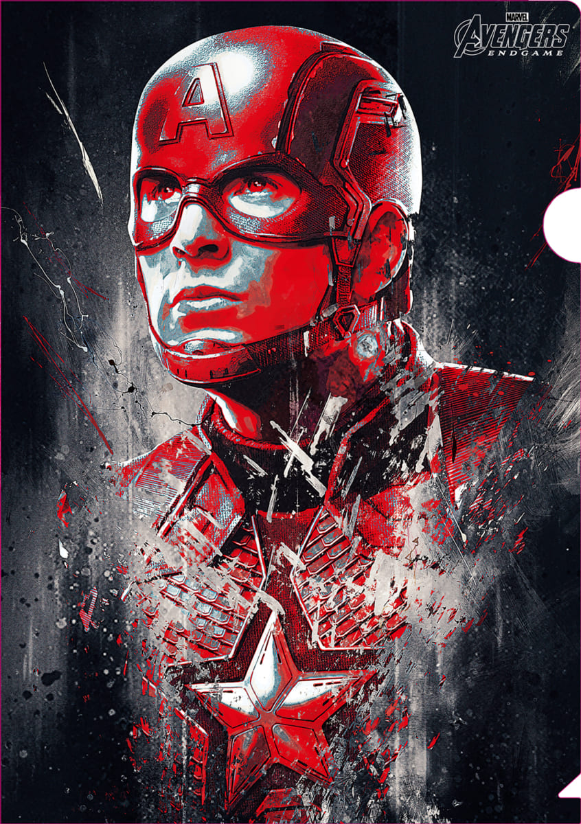 「アベンジャーズ」のエンブレムを中心にメンバーが配置されたクリアファイル。